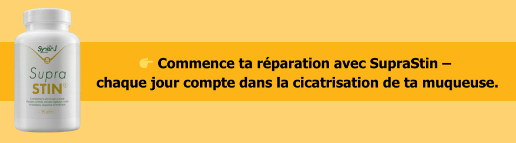 🛡️ Pour les intestins qui ont besoin de temps et de douceur pour se réparer, SupraStin offre un soutien naturel sur 3 mois minimum. La patience est souvent la clé d’une guérison durable.